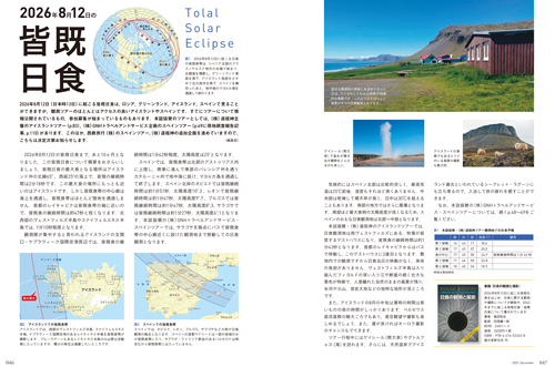 2026年8月12日(現地時/日本時刻では13日)に、ロシア、グリーンランド、アイスランド、スペインで皆既日食が起こります。その中で、アイスランドとスペインが観測地として注目されていますが、今月は最も多くの人が遠征されるであろう大注目のスペインでの皆既日食について解説します。現地を訪れ、観測地や気候についての現地調査を行ないました。天文ガイドの協賛日食観測ツアーの観測地の紹介もあります。