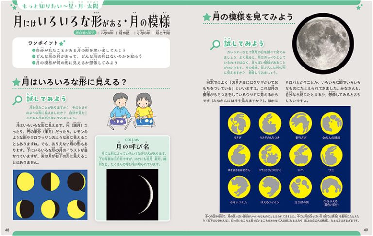 そのほか、小学校で学習する星・月・太陽についての知識をわかりやすく紹介しています。中学校で学習する天体の動きについても紹介しました。