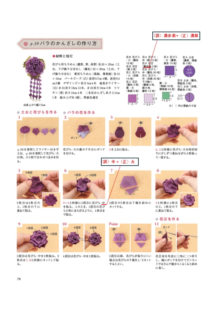 『つまみ細工の美しい色あわせ』につきまして、記述に誤りがありました。