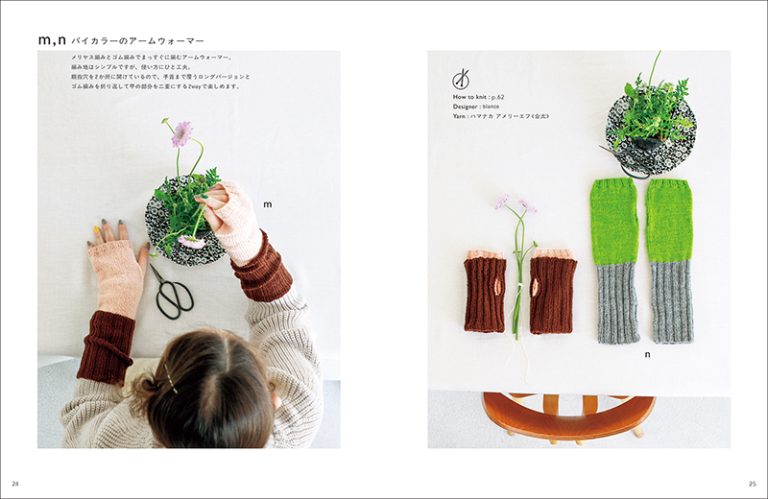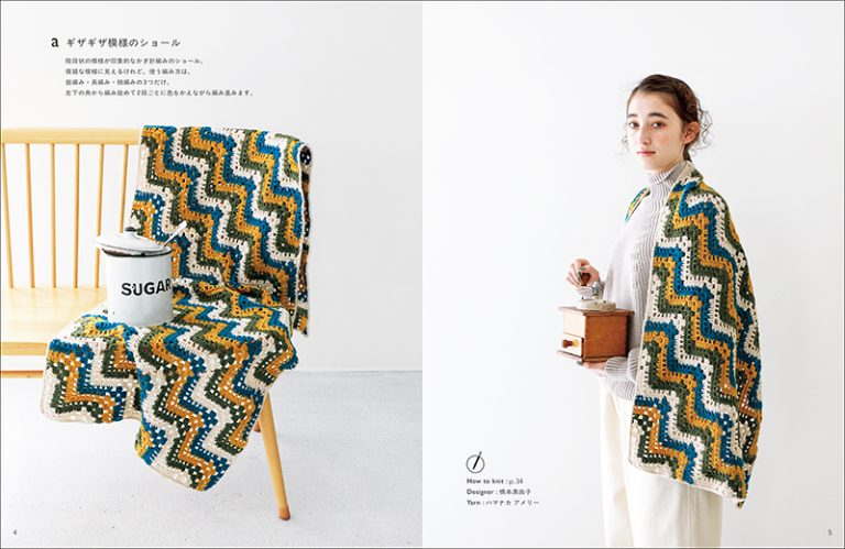 かぎ針編みの作品と、棒針編みの作品の両方を掲載。わかりやすいようにマークをつけてあります。