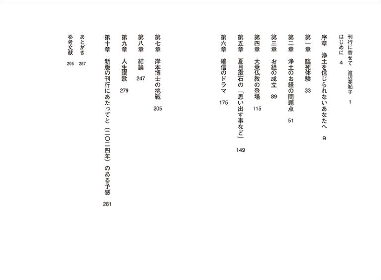 浄土宗寺院の住職である著者が「死後の世界の極楽浄土はあるのだろうか」という人間の基本的、根源的問題に応えようとさまざまな題材をとおしてテーマを追求した労作。お釈迦様は「人間はただ存在する」ものとして、死後の世界のことにはふれなかった。経験に基づかない議論は水掛け論になるため、あえてふれなかった。著者は仏教の世界を出て、外から見るという立場をとおして「浄土は、そこへ旅立つ人、その人を送る人、その様子を見守る人の三人のドラマが支えている」という独自の新しい見方に到達する。その見方を科学的思考の強い現代人(大多数の普通の人)にわかりやすく説く。そして、最期には「さよなら」と言うのではなく、「また、会いましょう」と約束する教えを導き出した。