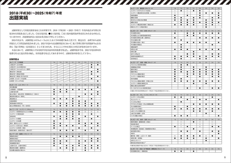1級土木施工管理技士の過去問集。平成30~令和7年度の過去問8年分を収録。選択肢ごとに詳細解説つき。