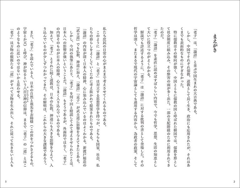 孔子の『論語』が儒教の根底思想として親しまれてきたのに対し、『老子』は道家の神髄を説いて人々に寄り添ってきました。ともに2500年以上の歴史の検証に耐えてきた思想書です。