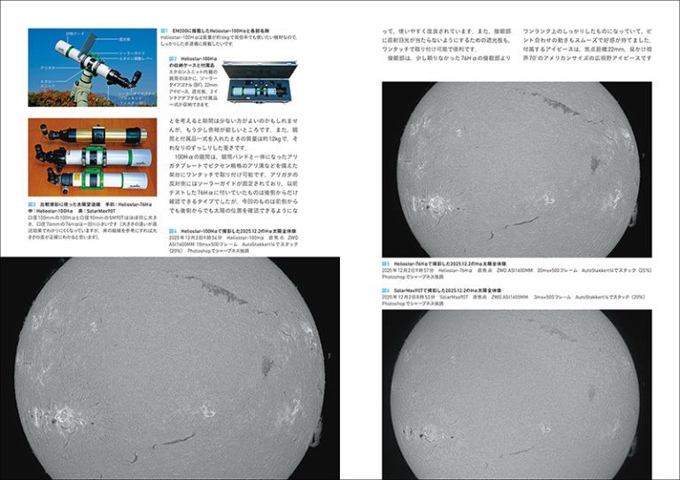 Sky-Watcher社のHα太陽望遠鏡「ヘリオスター100Hα」が新発売になりました。口径10cmと大きく、この口径の大きさがもたらす解像力と、高コントラストを誇るエタロンフィルターの採用で、より迫力ある太陽像を撮影することができるようになりました。太陽撮影の第一人者・塩田和生さんが実際に「ヘリオスター100Hα」で太陽撮影を行ない、撮影した太陽像とともに、望遠鏡について解説します。