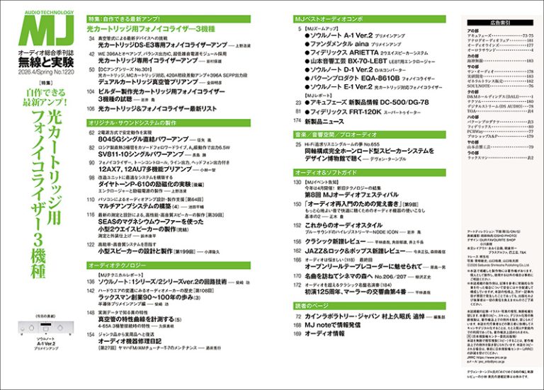 『MJ無線と実験』は『無線と實驗』として1924年に創刊されました。創刊当初はラジオと無線通信、第2次世界大戦中は電子技術の軍事利用、終戦直後にはラジオとアマチュア無線の大ブームに乗り、その後はテレビやデジタル技術を含むエレクトロニクス総合誌となりました。1970年代からはオーディオ記事の比率を上げ、現在は「オーディオ総合月刊誌」となっています。創刊以来、自作機器を中心に、オーディオ技術を一貫してそのテーマとし、現在でも最先端の情報を反映しながらその伝統を継承し続けています。