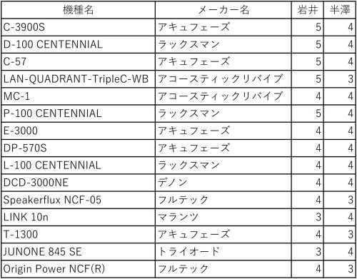 本誌2026.1冬号のMJテクノロジー・オブ・ザ・イヤー記事、28~32ページの配点表で、選考委員の岩井 喬氏と半澤公一氏の点数に誤りがございました。誌面では岩井氏と半澤氏の点数を逆に掲載してしまっております。正しくは表のとおりです(各機材の合計点数に間違いはなく、掲載しているとおりになります)。