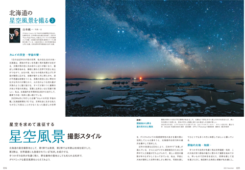 北海道にに魅力的に風景が数多く存在するが、先月のニセコに続き、今月は自然写真家の山本純一さんのナビゲートで、秋から冬にかけての知床での星空風景撮影スポットを美しい星空風景写真とともに紹介します。